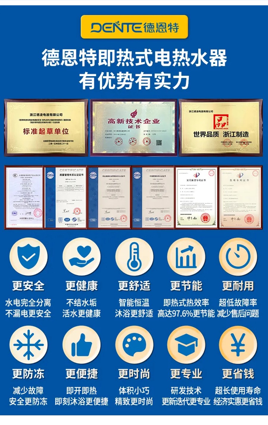 德恩特品牌旗下涵蓋即熱式電熱水器,速熱式電熱水器,快熱式電熱水器品牌和凈水機等