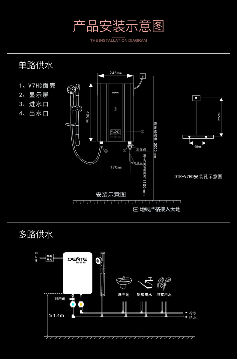德恩特DTR-V7HD85即開即熱3秒速熱 變頻恒溫洗澡淋浴