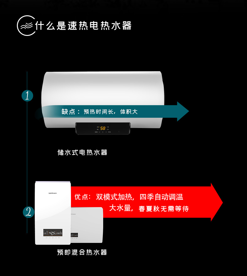速熱式電熱水器DTR-P20電熱水器黑色預即混合恒溫